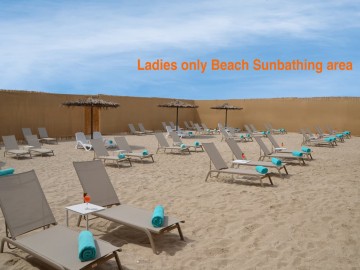 Пляж только для женщин, огражденный со всех сторон, позволяет комфортно загорать в полном уединении. Море не ограждено, необходимо купаться в буркини.