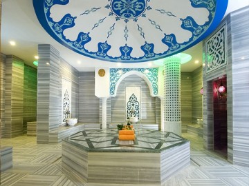 • Бассейны: раздельные для мужчин и женщин. Для мужчин, в отеле имеется бассейн с аквапарком и джакузи, крытый бассейн с подогревом, с джакузи и бассейн с морской водой на пляже.