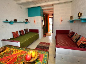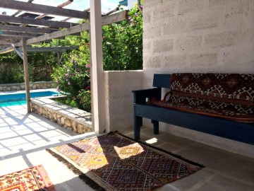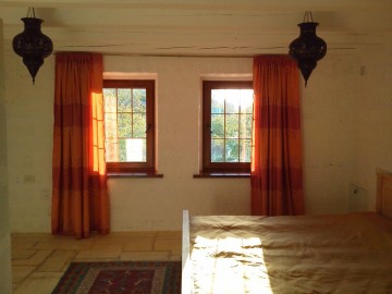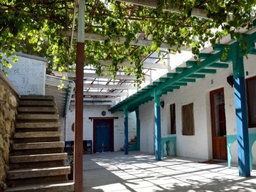 Комфорт+: двуспальная кровать, дополнительные кровати для 1-2 человек, душевая, фен, телевизор. Оборудованная терраса, внутренний дворик для отдыха или чайный домик в саду. Вид из окна на Бахчисарай и горы.