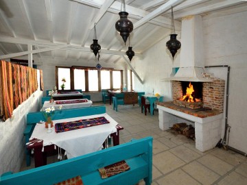 Отель «Бахитгуль» окружают тенистые аллеи, беседки с виноградными лозами, на территории есть бассейн, дающий прохладу и свежесть в жаркий полдень. Пообедать недорого и вкусно удобно в кафе-ресторане, средний чек 300-500 рублей. Завтрак и ужин можно заказать в номер.