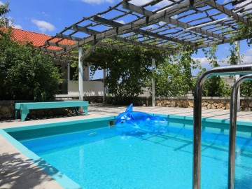 Люкс: большая двуспальная кровать, дополнительные кровати для 1-2 человек, душевая, фен, телевизор. Большая оборудованная терраса с видом на Бахчисарай, горы, сад и бассейн.