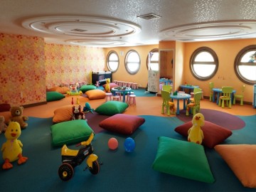 • Для детей: детский бассейн, мини-аквапарк; салон игр (c буфетом); игровая площадка, детский сад (5-11 лет); высокие стульчики. Детский боулинг, мини-футбол, настольный теннис, детский кинотеатр и т.д.
