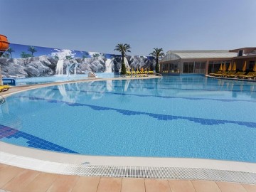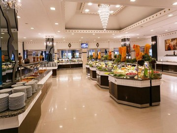 • Питание: Всё Включено Халяль. Для любителей вкусно поесть работает ресторан - шведский стол на 1500 персон, где найдутся блюда турецких и европейских кухонь, на любой вкус. Для ценителей рыбных блюд работает ресторан A'la Carte на 150 персон. Кроме этого, на протяжении всего дня, на территории отеля, вам будут рады предложить прохлодительные и горячие напитки, свежую выпечку - в любом количестве.