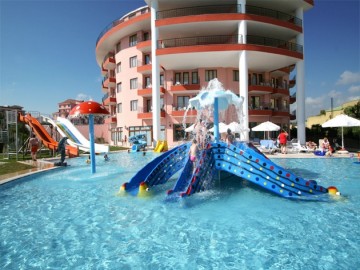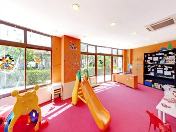 - Для детей: мини-клуб (4-12 лет), детское меню, 2 детских бассейна, мини-диско, развлекательные мероприятия, детская площадка, игровая комната, уроки рисования, кинотеатр, детская кроватка, няня (платно), аренда детских колясок (платно), детская ванна и горшок (под запрос), стерилизатор для бутылочек (под запрос), радионяня (под депозит).