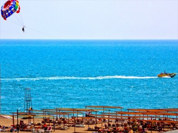 - Пляж: 1 линия, песчано-галечный, местами скалистый, общий пляж для семей с умеренным исламским дресс-кодом. Длина - 106 м, ширина - 80 м. Обладает Голубым флагом. Оборудование на пляже бесплатно.